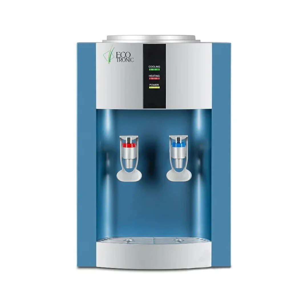 Базовая модель серебро. Настольный. С электронным охлаждением. Краны «нажим кружкой». Улучшенные качественные характеристики: - Более производительный блок эл. охлаждения; - Качественный бак емкостью 1.2 л. Отличие от дешевых аналогов - разборный бак горячей воды (не сварной) для простого и не дорогого ремонта в дальнейшем, штуцеры кранов из нержавеющей стали. Наши аппараты дороже - потому что лучше. Выбирайте настоящий Ecotronic, а не дешевые аналоги!