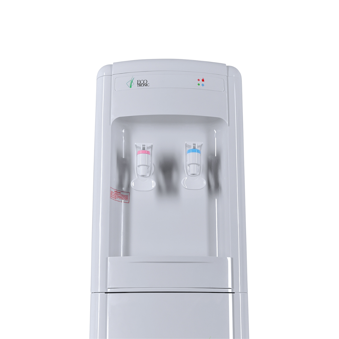 Кулер Ecotronic H2-LE. Напольный кулер с двойным блоком электронного охлаждения повышенной производительности! Производительность холодной воды сопоставима с компрессорными моделями - 2л/час. Система охлаждения в 2раза эффективнее, чем в обычных кулерах с электронным охлаждением. Нагрев: 5лч. Качественный бак нагрева, используемый во всех моделях серии "H". Тип кранов подачи воды - "Нажим кружкой".