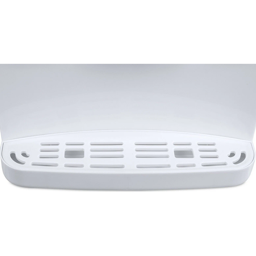 Настольный кулер для нагревания воды, без охлаждения. Два крана типа "нажим кружкой" для подачи горячей воды и воды комнатной температуры. Компактный корпус белого цвета, со светодиодными индикаторами в верхней части: индикатор подключения к сети и нагрева.