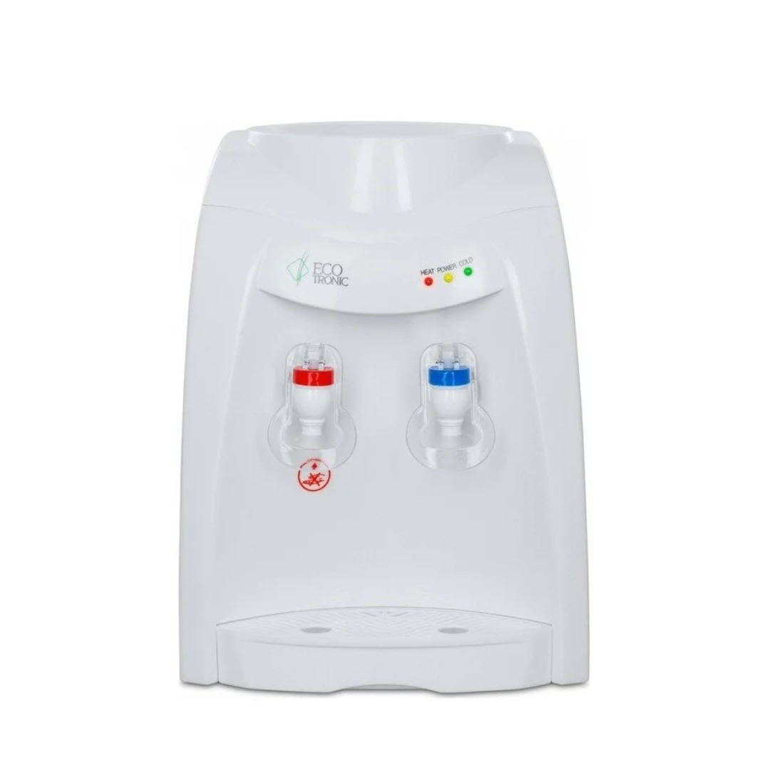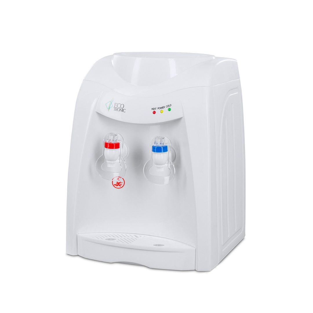 Кулер Ecotronic K12-TE white с электронным охлаждением, настольный. Высокая производительность: 5 л горячей воды в час, 90-92 С. Цвет корпуса – белый. Краны "нажим кружкой".