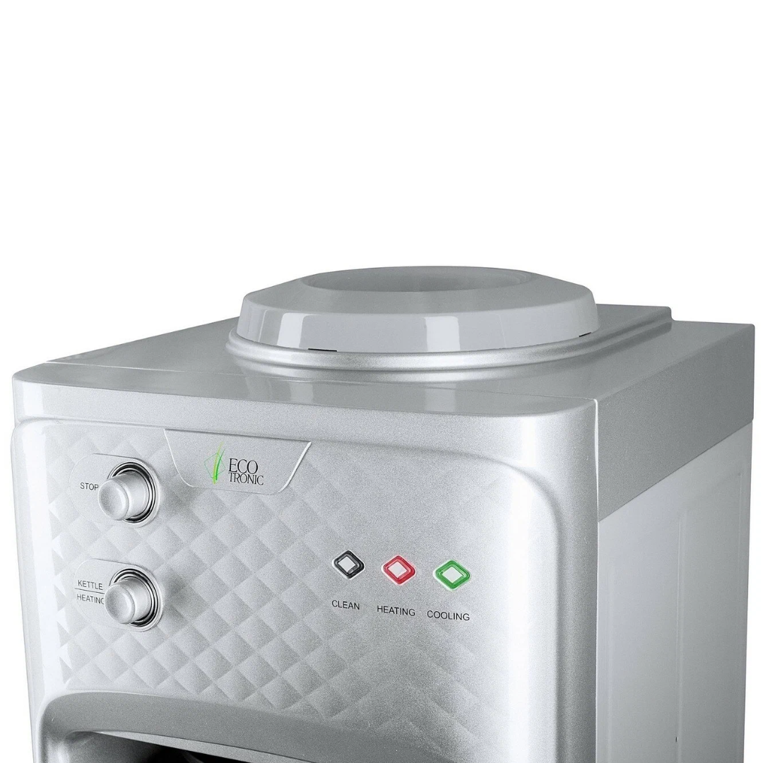 Кулер Ecotronic M12-LSKE с электронным охлаждением. Стильный встроенный чайник (кипячение или 100С), шкафчик с функцией озонирования, индикация режимов работы и готовности воды. Цвет корпуса: серебристый. Подача воды: нажим кружкой.