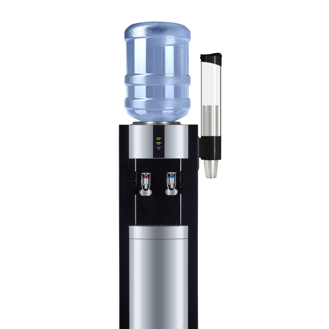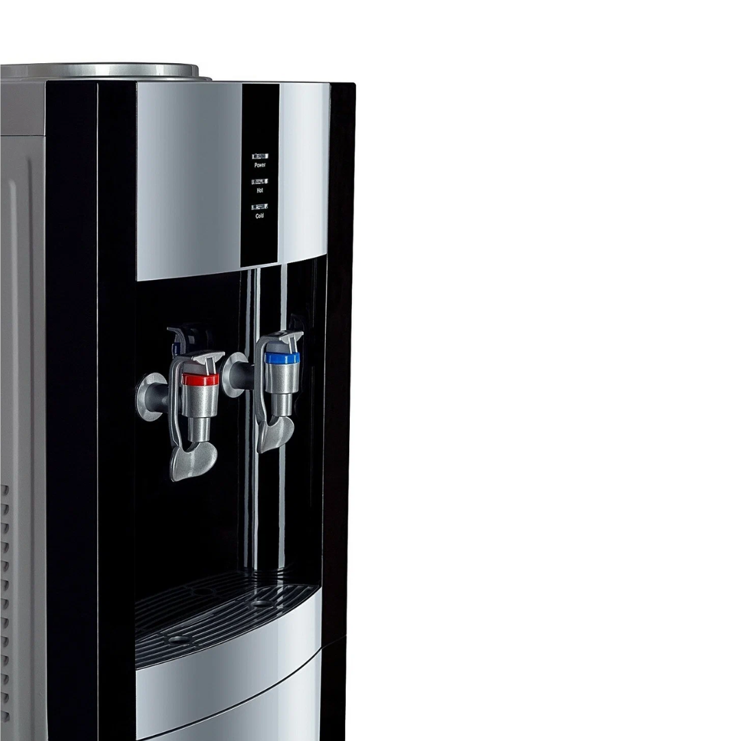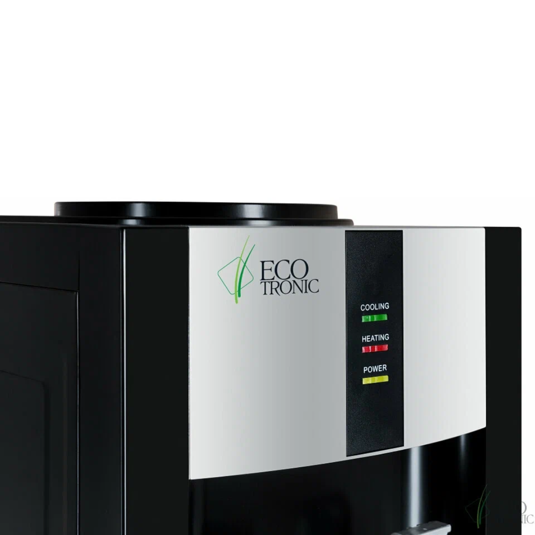 Кулер "Экочип" V21-L black-silver. Бюджетный аналог классической модели Ecotronic Н1. Напольный кулер с компрессорным охлаждением. Тип кранов подачи воды - "Нажим кружкой".