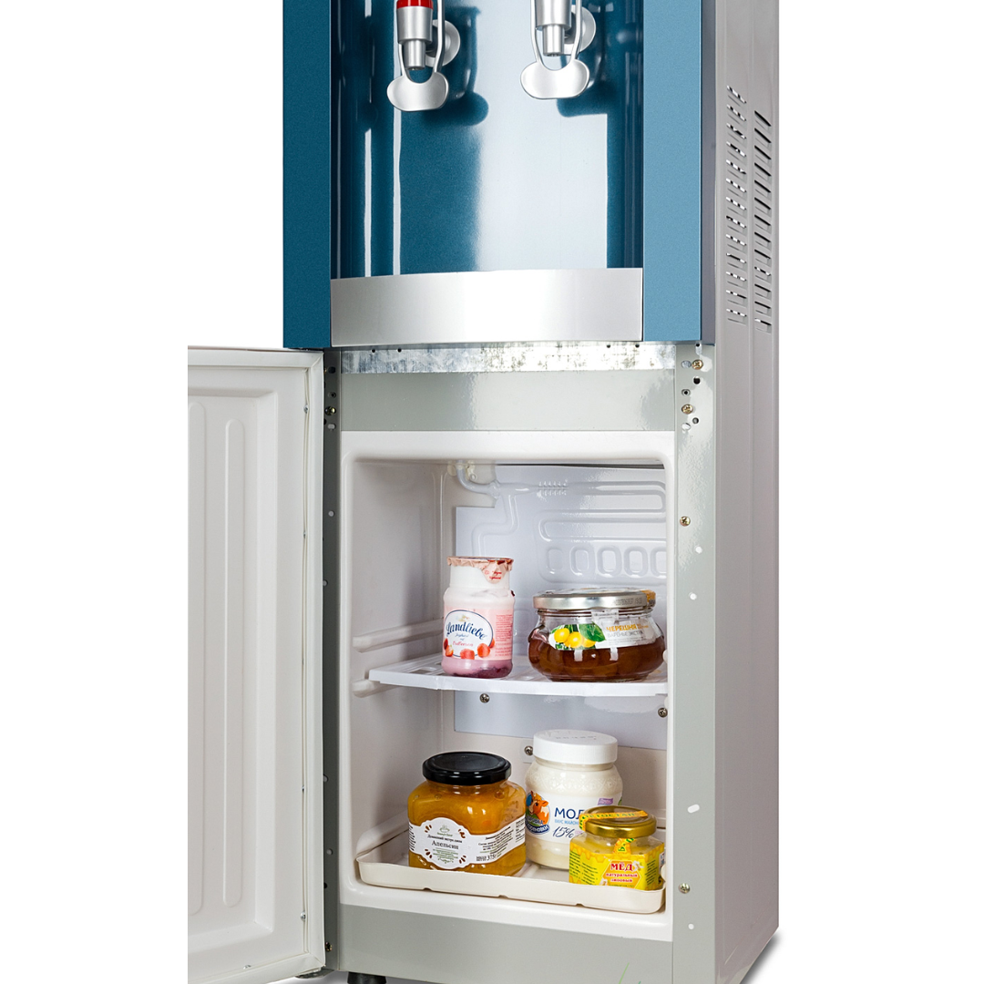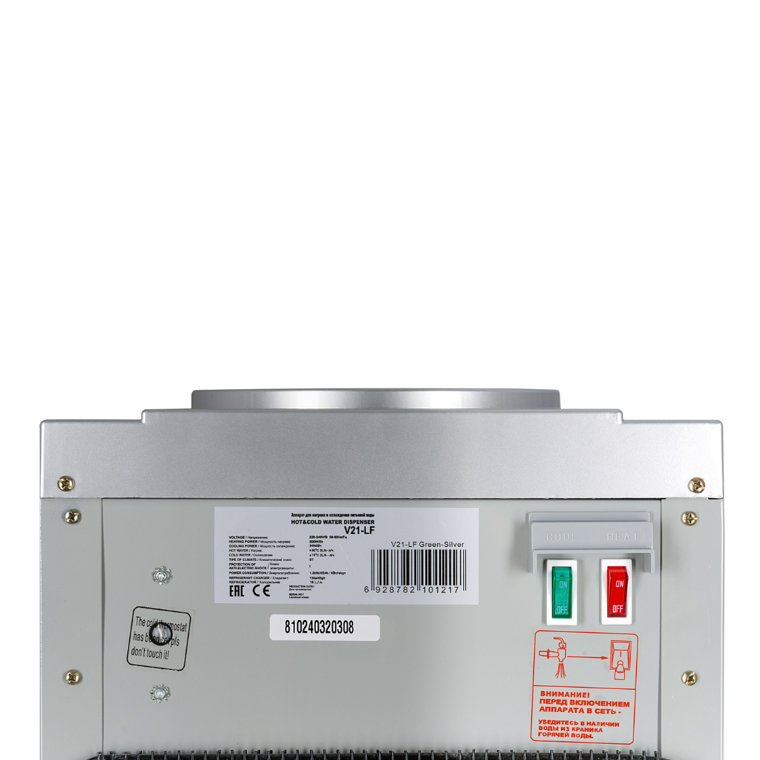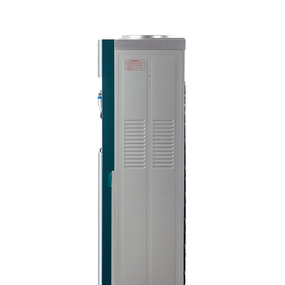 Кулер "Экочип" V21-LF green+silver. С холодильником. Бюджетный аналог классической модели Ecotronic Н1. Напольный кулер цвета морской волны с серебристой вставкой. Компрессорное охлаждение. Тип кранов подачи воды - "Нажим кружкой".