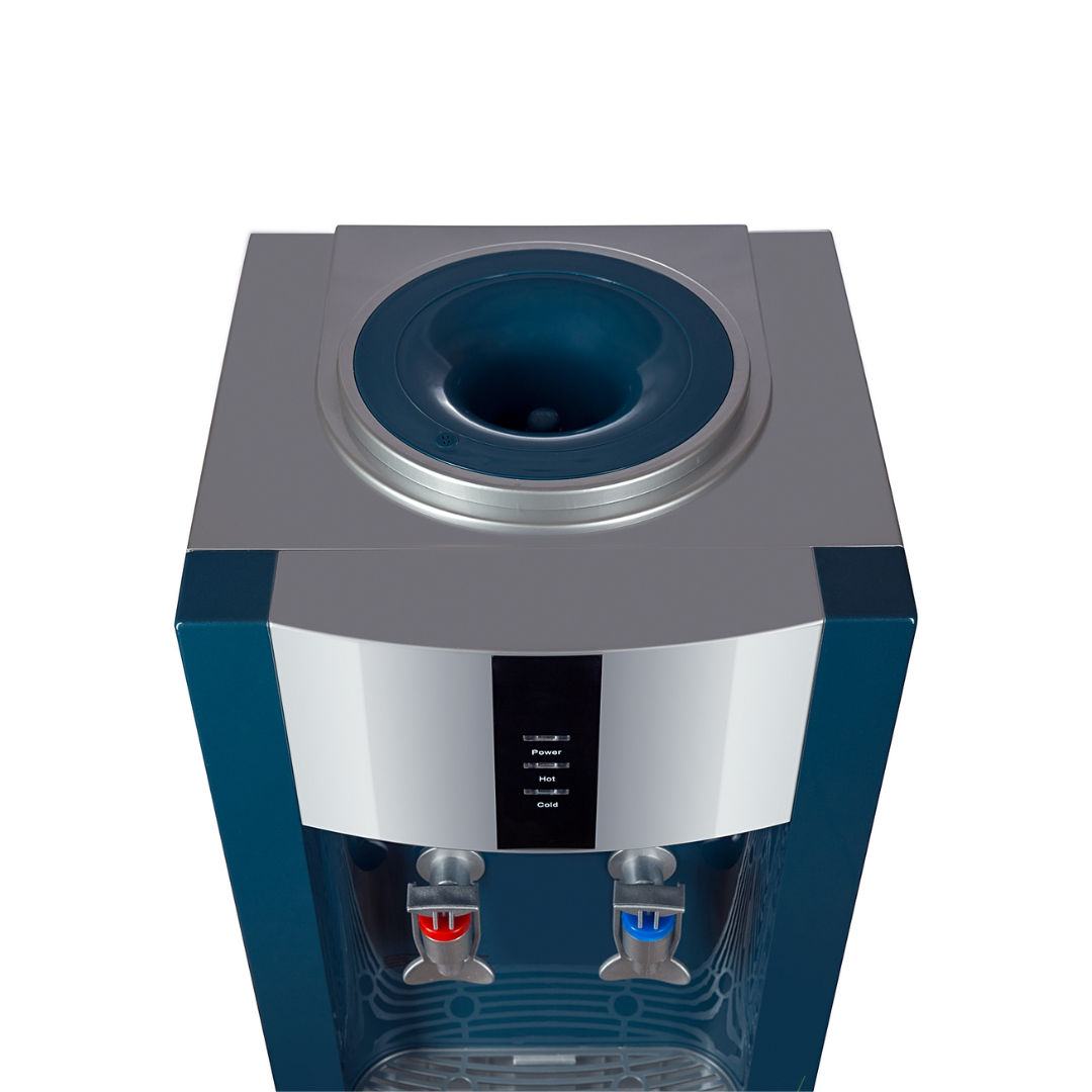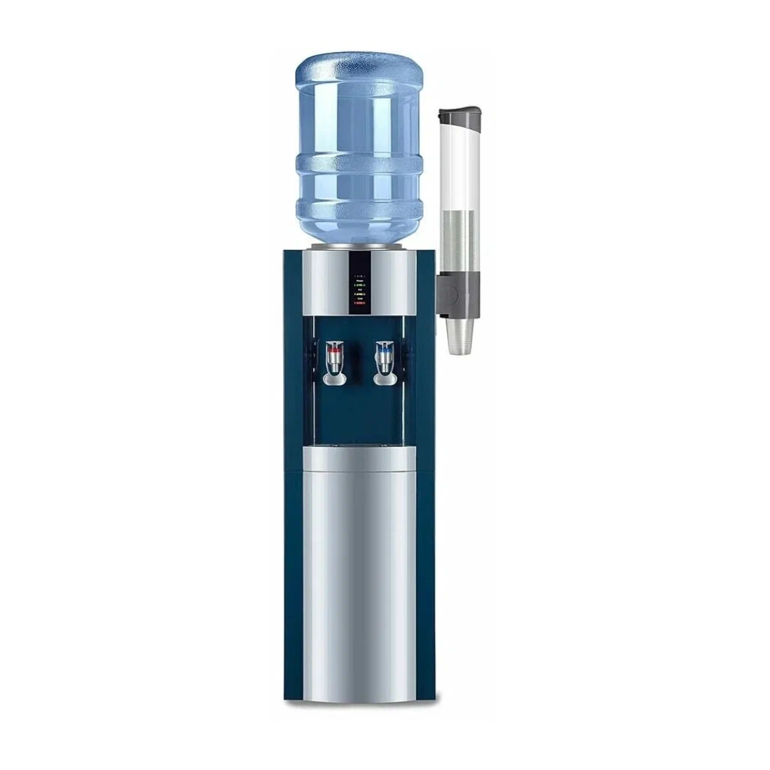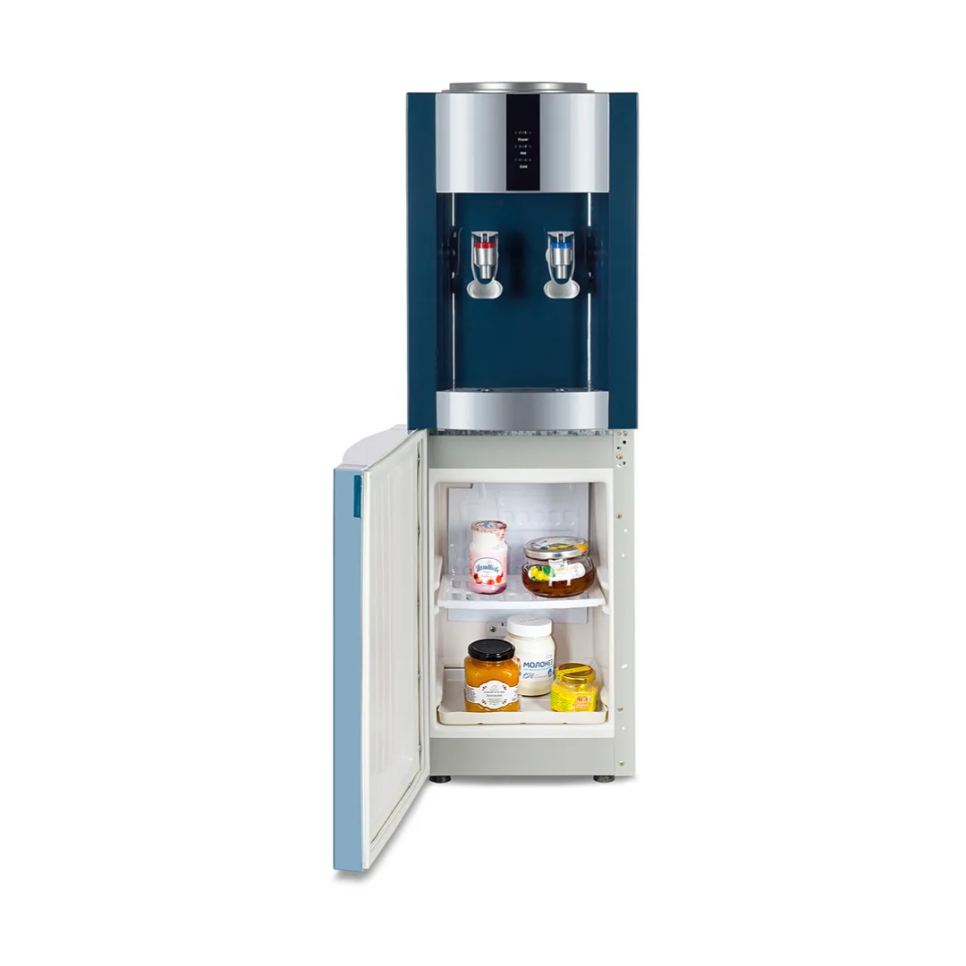 Кулер "Экочип" V21-LF green+silver. С холодильником. Бюджетный аналог классической модели Ecotronic Н1. Напольный кулер цвета морской волны с серебристой вставкой. Компрессорное охлаждение. Тип кранов подачи воды - "Нажим кружкой".