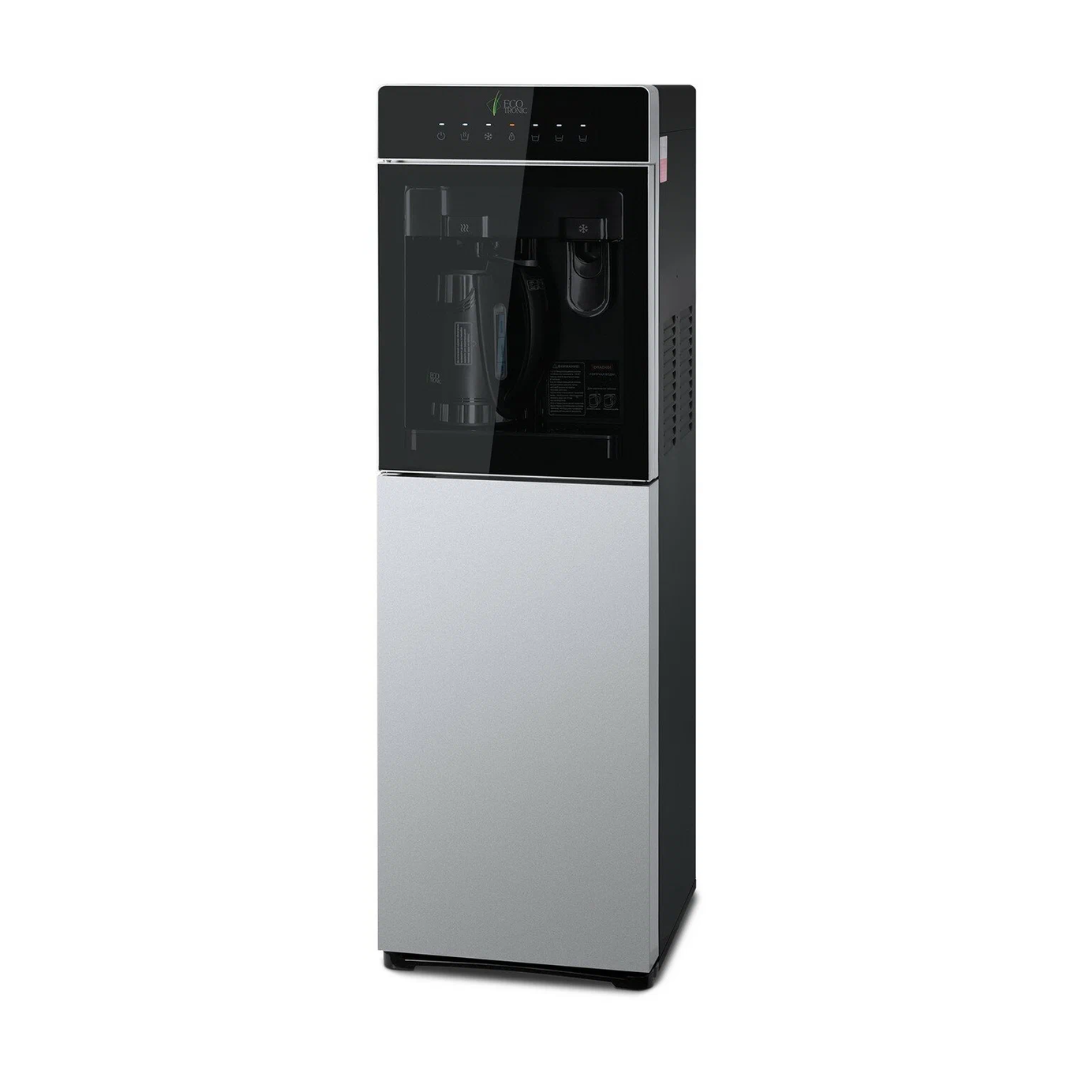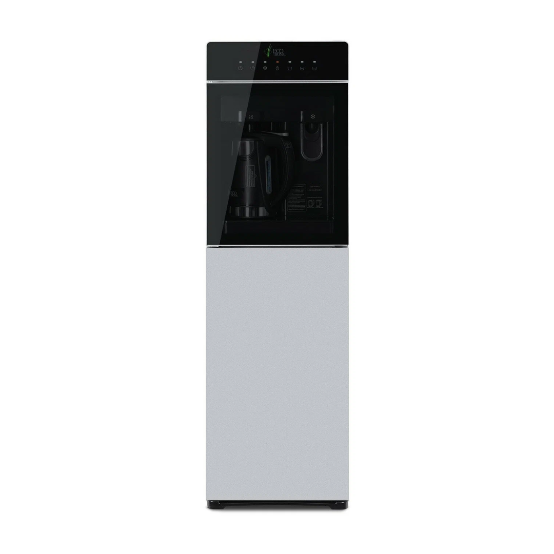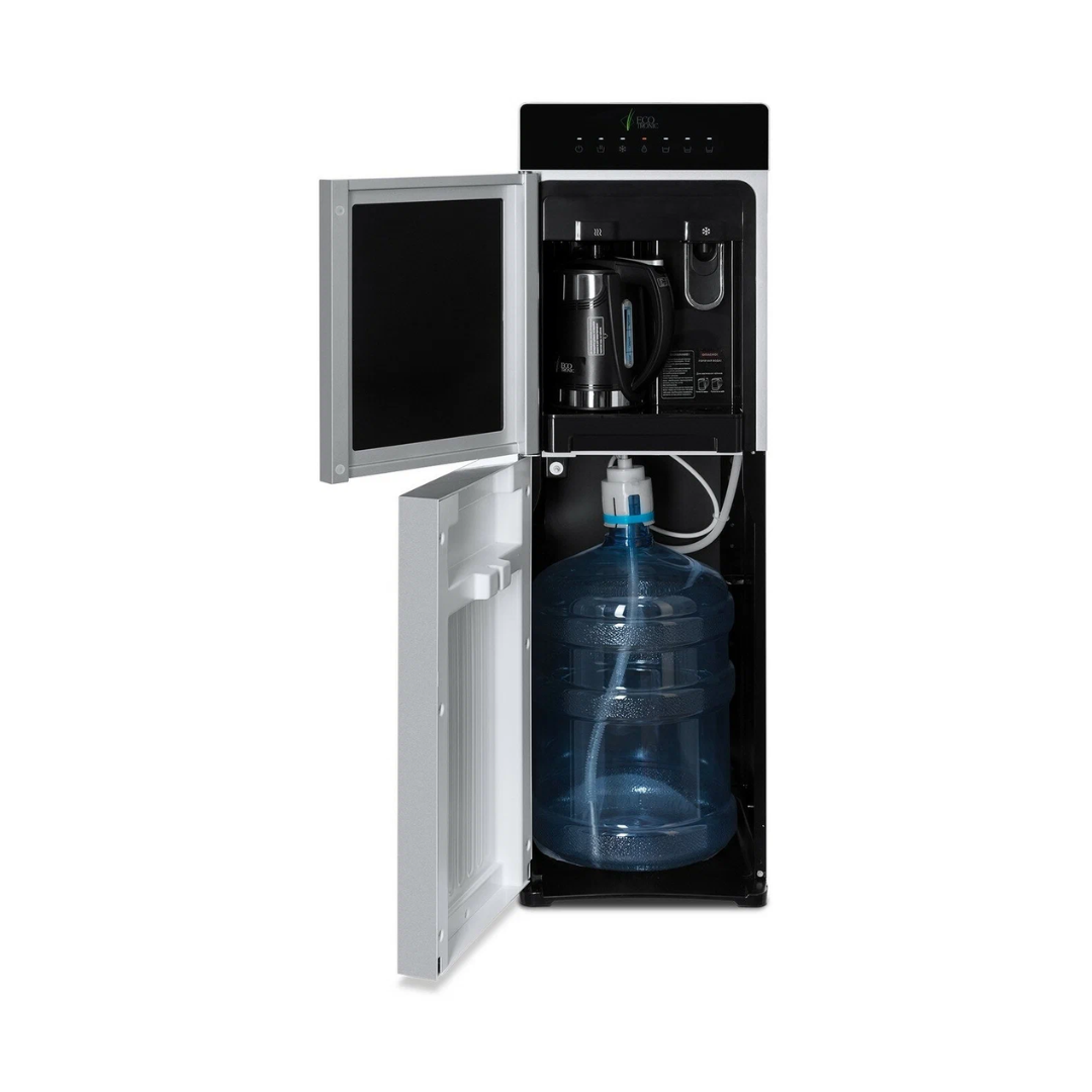Кулер Ecotronic M15-LXKEM с ЧАЙНИКОМ! Аппарат с нижней загрузкой бутыли, электронное охлаждение. Цвет корпуса: черный с серебряной вставкой. Особенность аппарата, встроенный литровый чайник! Горячая вода нагревается в чайнике,а объем наливаемой воды, регулируется кнопками на передней панели. Разливать горячую воду, так же можно только из чайника! Холодная вода набирается из крана (кран – нажим кружкой). Преимуществом аппарата, является высокая производительность нагрева горячей воды, до 9 литров в час! Температура нагрева воды достигает 99С! Панель управления с возможностью отключения нагрева и/или охлаждения воды. Индикация режимов нагрева/охлаждения и отсутствия воды в бутыли. Тихая работа водяного насоса. Защита от протечек. В боковых панелях имеются отверстия под крепления держателей для стаканов.