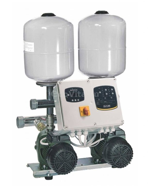 Станции повышения давления с горизонтальными многоступенчатыми насосами 2 Euro и 2 EuroInox от DAB предназначены для использования в бытовой и промышленной сфере. В модели 2 Euro корпус насоса из чугуна, модель 2 EuroInox оснащена самовсасывающими насосами с корпусом из нержавеющей стали. Каждая станция комплектуется двумя насосами, двумя расширительными баками и одним блоком управления E.Box с дисплеем (E.Box Plus), который позволяет изменять порядок запуска насосов при каждом пуске и, при подключении к нему поплавка или реле сухого хода, защищает насосы от работы без воды. В комплект входит соединительное крепление для устройства подачи воздуха. Каждый насос оснащен расширительным баком. Станции поставляются в собранном виде, после прохождения заводских испытаний и предварительно настроенные; прилагаются инструкции по монтажу и эксплуатации и отчеты об испытаниях.